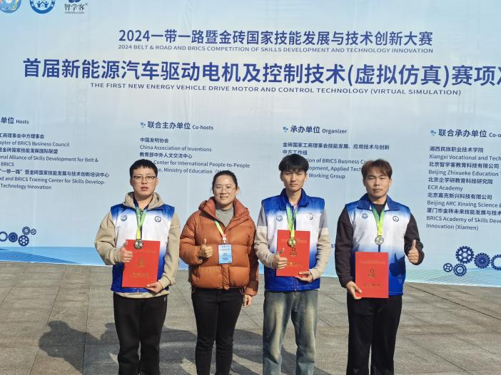 12月1日,2024一带一路暨金砖国家技能发展与技术创新大赛首届新能源汽车驱动电机及控制技术(虚拟仿真)赛项决赛落下帷幕,永利集团y23455的师生团队凭借扎实的专业技能和出色的赛场表现,在全国119支参赛队伍中脱颖而出,成功斩获一等奖一项,二等奖两项的优异成绩。
