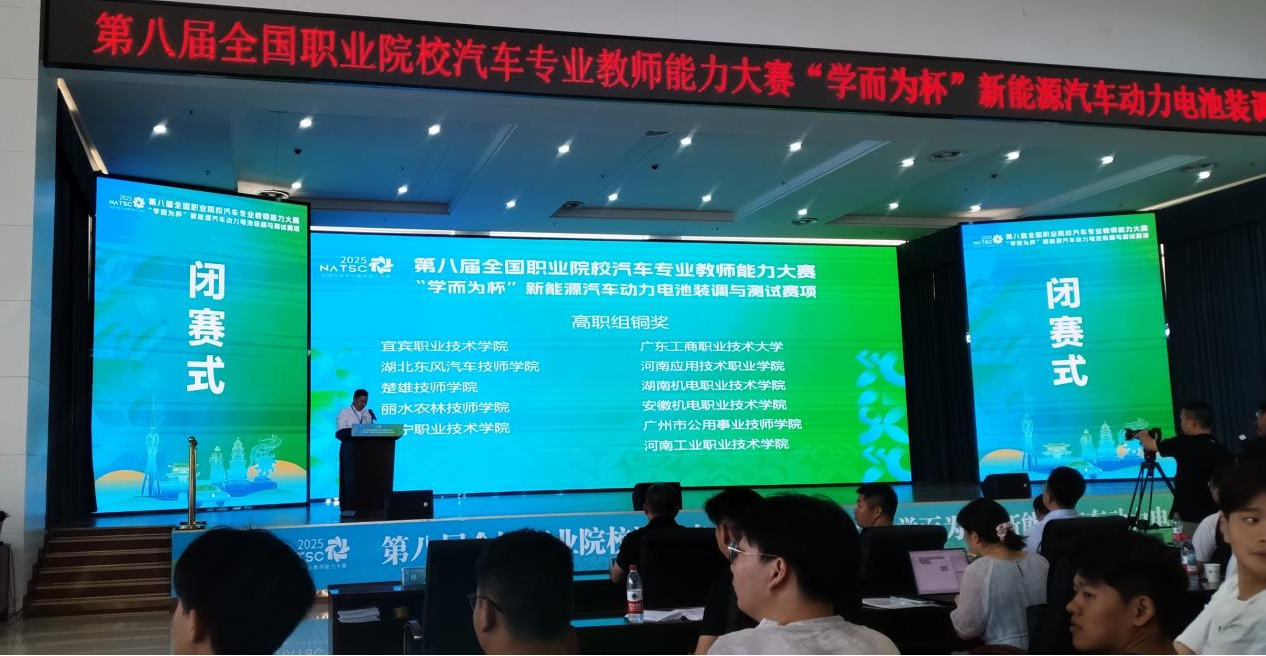 2025年6月13日,第八届全国职业院校汽车专业教师能力大赛“学而为杯”新能源汽车动力电池装调与测试赛项正式拉开帷幕,6月14日至15日展开激烈角逐。我院教师王春燕、李航老师在副院长仵征带队下获得高职组铜奖。