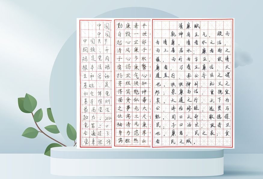 此次党日活动将廉政教育与硬笔书法、岗位实践深度融合,既丰富了党员组织生活形式,又让廉洁思想真正融入党员的日常认知与岗位行动。通过完全自主的创作过程,党员老师们不仅提升了廉洁自律意识,更明确了岗位廉洁的具体要求,为推动学院各项工作廉洁高效开展、建设风清气正的育人环境筑牢了坚实的思想根基。