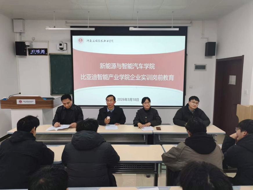 3月18日,永利集团y23455在B205举行比亚迪智能产业学院企业实训岗前教育会,为即将于3月19日奔赴比亚迪郑州工厂开展企业实训的55名大二学生进行岗前专题教育。学院党总支书记付永、院长孙丽娜、副院长仵征、学工办主任董芳甫及全体大二辅导员出席会议。