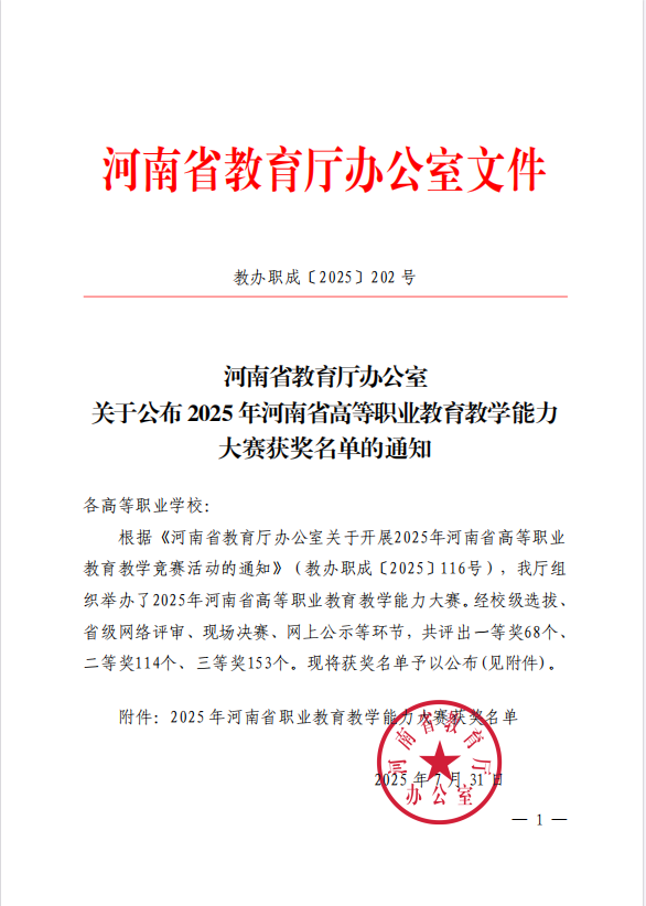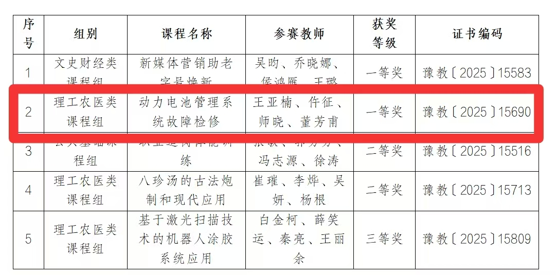 近日,2025年河南省高等职业教育教学能力大赛圆满落幕。我校永利集团y23455派出的教师团队——王亚楠、仵征、师晓、董芳甫四位老师,首次参赛便以出色的表现荣获省一等奖,实现了汽车学院在该赛事中的历史性突破!
